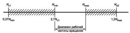 3.19. Первая критическая частота вращения (first critical speed): самая низкая частота вращения, при которой боковая собственная частота колебаний вращающихся деталей соответствует частоте вращения.