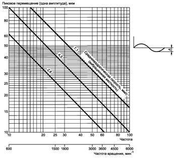 Зависимость между амплитудой, частотой и скоростью вибрации приведена на рисунке E.1.