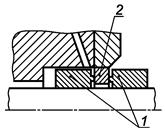 Положение полости уплотнения в компоновке трубопровода, который начинается до и продолжен после полости уплотнения, должно быть обозначено чертой /.