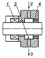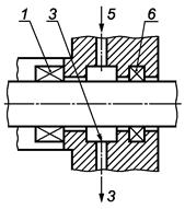 1 - основное уплотнение; 2 - подвод охлаждения (не обязательно); 3 - отвод утечки (проток); 4 - дроссельная втулка; 5 - подвод охлаждения (обязательно); 6 - дополнительное уплотнение