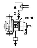 (2) Для неустойчивого потока: самая низкая подача, при которой насос может работать и сохранять температуру перекачиваемой жидкости ниже, чем при которой имеющийся надкавитационный напор (NPSHA) равняется требуемому надкавитационному напору (NPSHR).