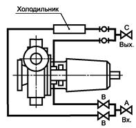 Последовательное охлаждение камеры мягкого сальника и корпуса подшипника с параллельной подачей в холодильник