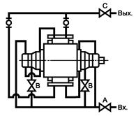 A - клапан отключения на входе;