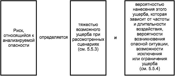 e) элементы риска и концепции определения риска, обращая особое внимание на определении уровня тяжести ущерба (см. 5.5.3) и уровня вероятности причинения ущерба (см. 5.5.4). До того, как будет определяться уровень вероятности, важно, чтобы члены рабочей группы приняли во внимание все элементы вероятности: частоту, продолжительность подверженности человека опасности, вероятность возникновения сценариев и возможность уменьшить или исключить ущерб;