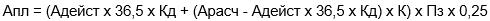 В случае если Арасч > (Адейст x 36,5), квартальная арендная плата (Апл) в рублях, подлежащая перечислению, определяется по следующей формуле: