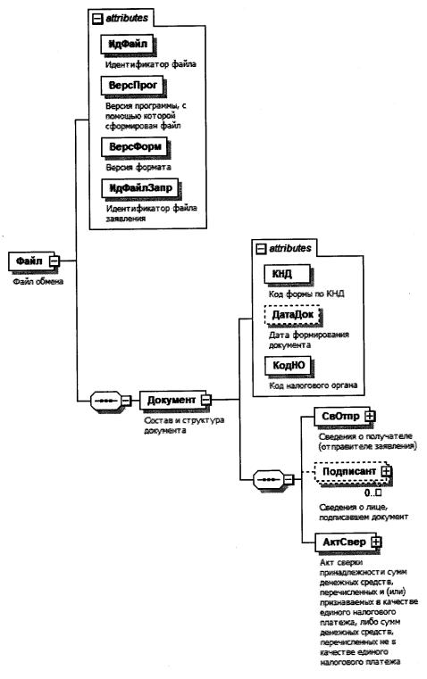 XML-схема файла обмена приводится отдельным файлом и размещается на официальном сайте Федеральной налоговой службы в информационно-телекоммуникационной сети "Интернет".