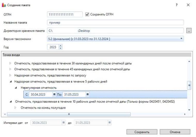 Заполнение параметров периода в ПО "Анкета-редактор XBRL" при формировании отчетности по форме 0420410 за отчетный период-май 2023 г.