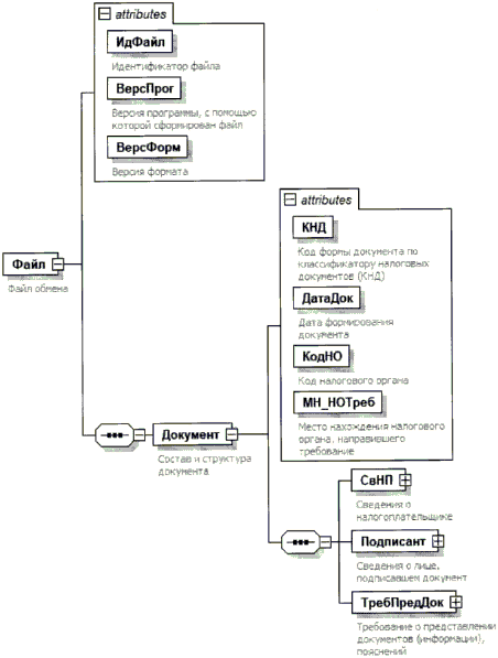 | Основание для истребования документов | | ОснИстреб | С | О | Состав элемента представлен в таблице 4.7. Элемент присутствует при направлении требования о представлении документов (информации) (<КНД>= 1165013 из таблицы 4.2) | |