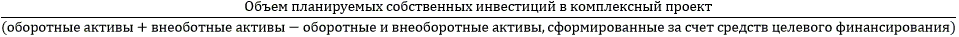 для значений показателя "коэффициент обеспеченности собственных инвестиций в комплексный проект":