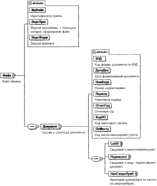 XML-схема файла обмена приводится отдельным файлом и размещается на сайте Федеральной налоговой службы.