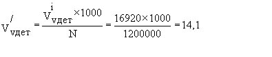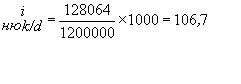 Показатель представляет собой сумму произведений показателей уровня госпитализации на 1000 населения по профильным отделениям (Уг') на соответствующие показатели средней длительности пребывания больного в профильном отделении стационара