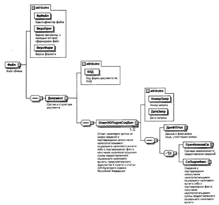 ОБ УТВЕРЖДЕНИИ ФОРМАТОВ ДОКУМЕНТОВ, ИСПОЛЬЗУЕМЫХ В РАМКАХ ОБМЕНА ИНФОРМАЦИЕЙ О ФАКТАХ ПОДТВЕРЖДЕНИЯ НЕПОЛУЧЕНИЯ НАЛОГОПЛАТЕЛЬЩИКОМ СОЦИАЛЬНОГО НАЛОГОВОГО ВЫЧЕТА ЛИБО ПОЛУЧЕНИЯ НАЛОГОПЛАТЕЛЬЩИКОМ СУММЫ ПРЕДОСТАВЛЕННОГО СОЦИАЛЬНОГО НАЛОГОВОГО ВЫЧЕТА ПО НАЛОГУ НА ДОХОДЫ ФИЗИЧЕСКИХ ЛИЦ, ПРЕДУСМОТРЕННОГО ПОДПУНКТОМ 4 ПУНКТА 1 СТАТЬИ 219 НАЛОГОВОГО КОДЕКСА РОССИЙСКОЙ ФЕДЕРАЦИИ, В ЭЛЕКТРОННОЙ ФОРМЕ