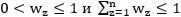 - относительный вес показателя предоставления поддержки, указанного в пункте 31 настоящих Правил под порядковым номером (z) (от 1 до 10 - для центров 1-й волны, от 1 до 11 - для центров 2-й волны), в отчетном периоде, значение которого устанавливается в документации отбора получателей поддержки, при этом на wz накладываются следующие ограничения: