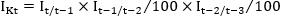 52. Индекс цен на конец квартала к концу предыдущего квартала определяется как произведение трех индексов цен за каждый месяц, составляющий отчетный квартал, к предыдущему месяцу: