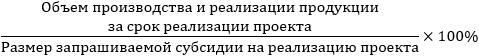 отношение значения объема производства и реализации продукции за срок реализации проекта к размеру запрашиваемой субсидии на реализацию проекта;
