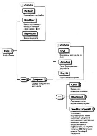 XML схема файла обмена приводится отдельным файлом и размещается на официальном сайте Федеральной налоговой службы в информационно-телекоммуникационной сети "Интернет".
