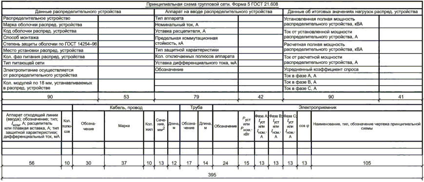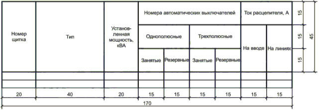 А.6 В графах ведомости данных о групповых щитках указывают: