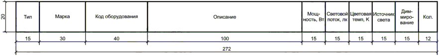 - в графе "Тип" - условное обозначение осветительного прибора одной марки. Обозначение, как правило, должно состоять из букв русского и (или) латинского алфавита и цифр;