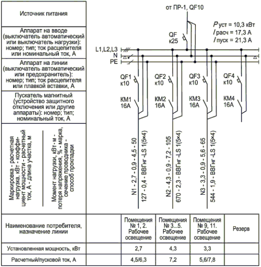 ПРИМЕР ОФОРМЛЕНИЯ ПРИНЦИПИАЛЬНОЙ СХЕМЫ ГРУППОВОГО ЩИТКА ОСВЕЩЕНИЯ В ТАБЛИЧНОМ ВИДЕ
