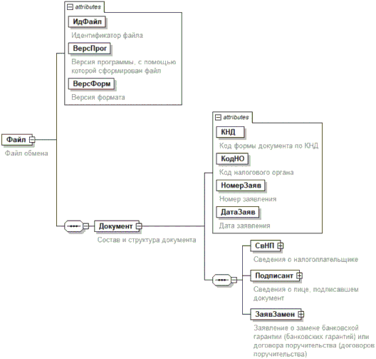 1. Настоящий формат описывает требования к XML-файлам (далее - файл обмена) передачи в налоговый орган заявления о замене банковской гарантии (банковских гарантий) или договора поручительства (договоров поручительства) в электронной форме.