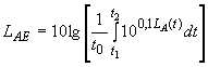 где t0- исходная длительность, равная 1 с; t2-t1- выбранный временной интервал; L_A(t) - текущее значение уровня звука.