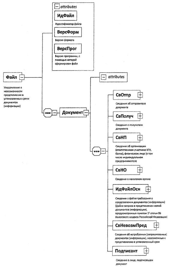 | Сведения об истребуемых документах (информации), невозможных к представлению в установленный срок | СвНевозмПред | С | НМ | Состав элемента представлен в таблице 4.6 | |
