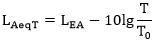 Уровень звукового воздействия A, измеренный на временном интервале T, позволяет определить эквивалентный уровень звука с помощью формулы (в ред. Изменения N 1, утв. Протоколом Росстандарта от 26.12.2022 N 157-П)