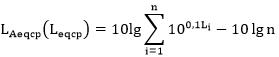 где - значение измеренного и откорректированного эквивалентного уровня звука (эквивалентного уровня звукового давления), полученное для i-го измерения в конкретной точке измерения, i = 1, 2, 3,..., n (n - общее количество измерений в данной точке).