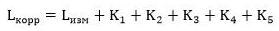 3.23. Коррекция: здесь любая величина, положительная или отрицательная, которую прибавляют к измеренному или рассчитанному по результатам измерения значению уровня шума для того, чтобы учесть влияние на него дополнительных факторов, связанных с местом измерения (например, влияние фонового (остаточного) шума, влияние звукопоглощающих свойств помещения и т.п.) или с особенностями источника шума.