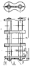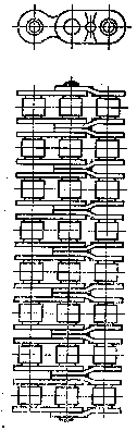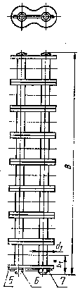 Внутреннее звено многорядной цепи должно состоять из однорядных внутренних звеньев, отличающихся друг от друга по наименьшему размеру между крайними образующими втулок: