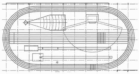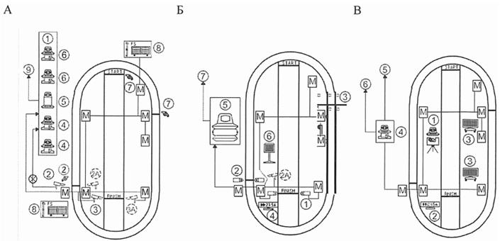 Б - манеж с дорожками для бега по прямой и сектором толкания ядра в центральной части;