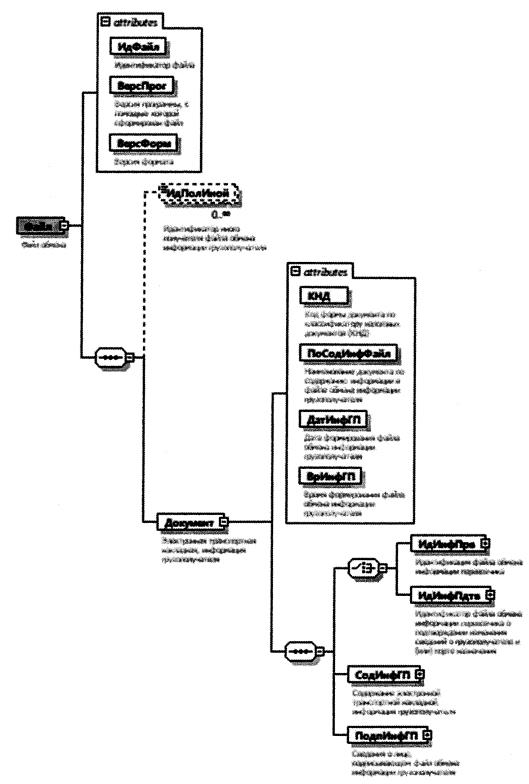 XML-схема файла обмена в электронной форме приводится отдельным файлом и размещается на официальном сайте Федеральной налоговой службы в информационно-телекоммуникационной сети "Интернет".