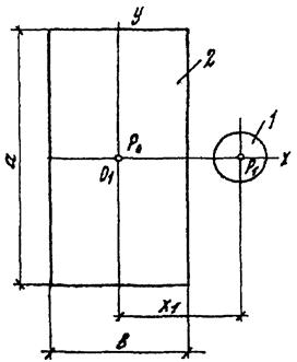 Ж.2.3.8. С расчетным центром совмещают центр тяжести элементарной площадки, по форме и размерам соответствующей нагрузке простого вида со следами круглой (см. рисунок Ж.1 в) или квадратной (см. рисунки Ж.1 а, Ж.1 б и Ж.1 в) формы, а также прямоугольной формы (см. рисунки Ж.1 в', Ж.2 а, Ж.2 б), если ось 0Y располагается параллельно длинной стороне прямоугольника. При расположении длинной стороны прямоугольника перпендикулярно оси 0Y длину этой стороны прямоугольника следует принимать не более 0,6l (см. рисунок Ж.2 в, Ж.2 г) и для него определять радиус равновеликого круга r, (см. Ж.1.11).