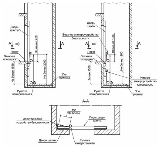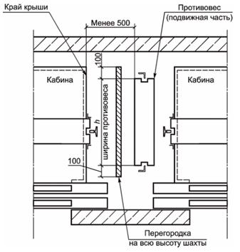 | 2 Расположение кабины и противовеса лифта в одной шахте | ГОСТ Р 56943-2016, пункт 5.2.2 | |||