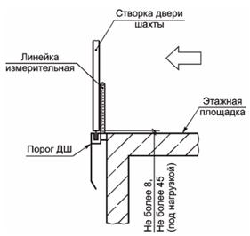 | 4 Зазор между отводкой привода дверей и порогом двери шахты 4-го этажа составляет 2,0 мм | Инструкция по монтажу, рисунок 8 |