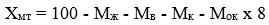 При использовании в качестве рецептурного ингредиента мяса механической обвалки (дообвалки) за массовую долю мышечной ткани в нем принимают результат вычисления по формуле