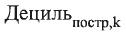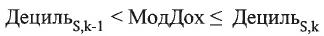 k - порядковый номер группы доходов заемщиков (от 1 до 10). В целях определения порядкового номера группы доходов заемщиков информация о величинах среднемесячных доходов заемщиков, включенных в набор данных для построения модели и набор данных для оценки точности модели, ранжируется по величине среднемесячного дохода заемщика, рассчитанной кредитной организацией с использованием модели оценки дохода заемщика, от наименьшей к наибольшей и делится на 10 групп таким образом, чтобы на каждую группу приходилось 10 процентов заемщиков.