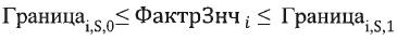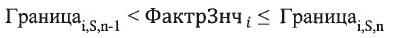 Значение i-го фактора модели, имеющего непрерывный интервал возможных значений, признается принадлежащим n-й группе i-го фактора модели, если соблюдается одно из следующих неравенств: