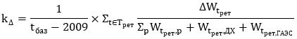 - средняя величина удельных потерь электрической энергии при ее передаче и распределении на единицу полезно потребляемой электрической энергии в период времени с 2010 года до базового года включительно (далее - ретроспективный период), определяемая по следующей формуле: