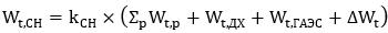б) потребление электрической энергии на СН электростанций рассчитывается как произведение суммарного отпуска электрической энергии от электростанций и величины среднего удельного расхода электрической энергии на СН электростанций по следующей формуле: