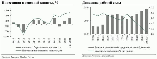 При этом фактическая скорость перестройки экономики и восстановления деловой активности оказалась более высокой, чем предполагалось. По мере достижения полной занятости на рынке труда это привело к появлению признаков перегрева. Внутренний спрос с 2023 года растет опережающими по отношению к производственным возможностям темпами, что сформировало повышенный инфляционный фон.