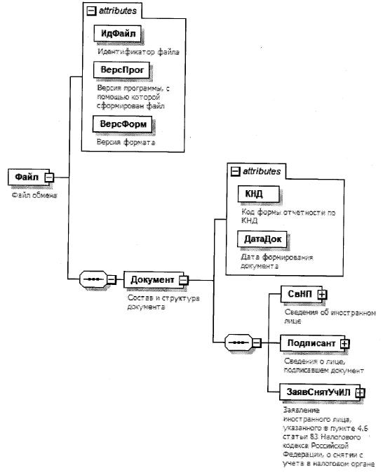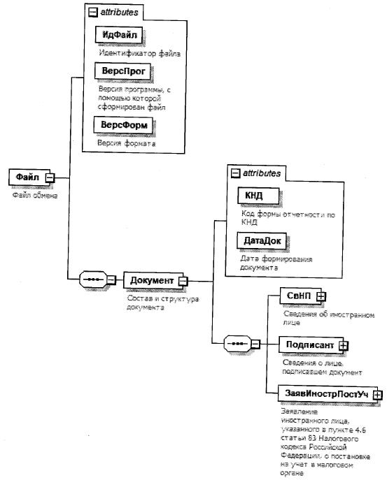 | Заявление иностранного лица, указанного в пункте 4.6 статьи 83 Налогового кодекса Российской Федерации, о постановке на учет в налоговом органе | ЗаявИнострПостУч | С | О | Состав элемента представлен в таблице 4.8 |