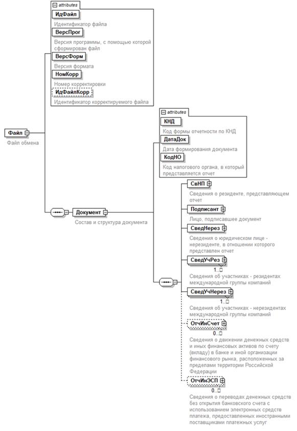 1. Настоящий формат описывает требования к XML-файлам (далее - файл обмена) передачи в электронной форме юридическими лицами - резидентами налоговым органам отчетов о движении средств и иных финансовых активов юридического лица - нерезидента, входящего в одну международную группу компаний с юридическим лицом - резидентом, по счету (вкладу) в банке и иной организации финансового рынка, расположенных за пределами территории Российской Федерации, и о переводах денежных средств без открытия банковского счета с использованием электронных средств платежа, предоставленных иностранными поставщиками платежных услуг.