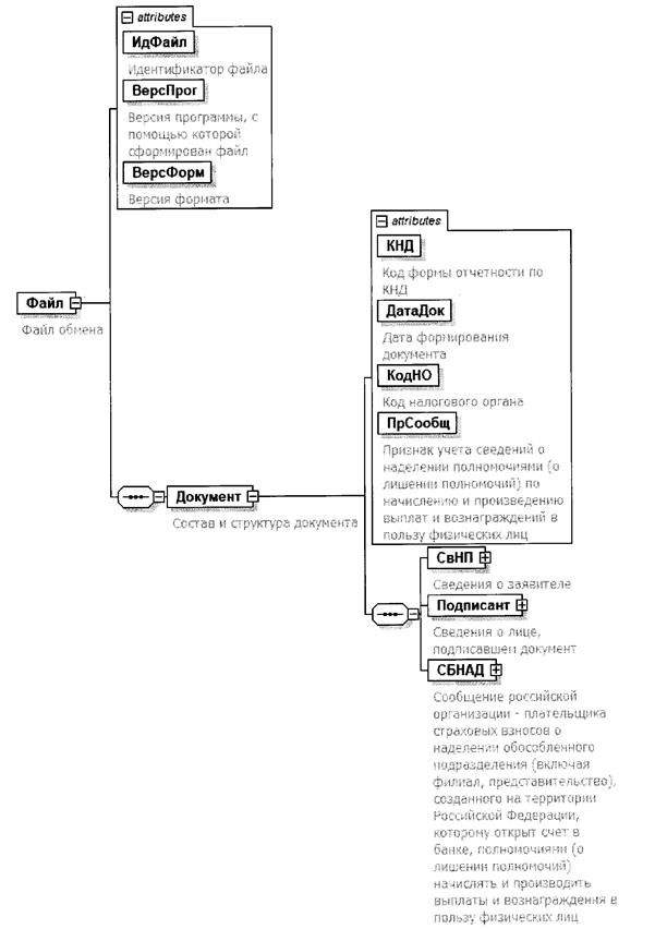 XML схема файла обмена приводится отдельным файлом и размещается на сайте Федеральной налоговой службы.