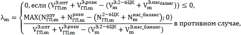 - объем покупки электрической энергии гарантирующим поставщиком у производителей электрической энергии (мощности) на розничных рынках, в том числе у собственников и иных законных владельцев объектов микрогенерации, в соответствии с Основными положениями функционирования розничных рынков электрической энергии за расчетный период (m), МВт·ч; (в ред. Постановлений Правительства РФ от 04.05.2012 N 442, от 02.03.2021 N 299)