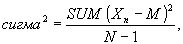 Дисперсия (сигма(2)) вычисляется по формуле: