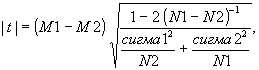 M1 и M2 - сравниваемые средние арифметические значения количества колоний;