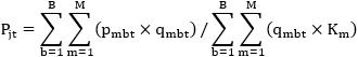 - цена материала марки m в организации b в отчетном месяце t, рублей;