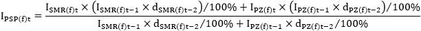 - индекс цен ППЗУ по f-му виду экономической деятельности в субъекте Российской Федерации (федеральном округе, Российской Федерации) соответственно в отчетном месяце t и предыдущем месяце t - 1, %;