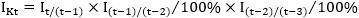 - индекс цен первого месяца t - 2 отчетного квартала к предыдущему месяцу t - 3, %;